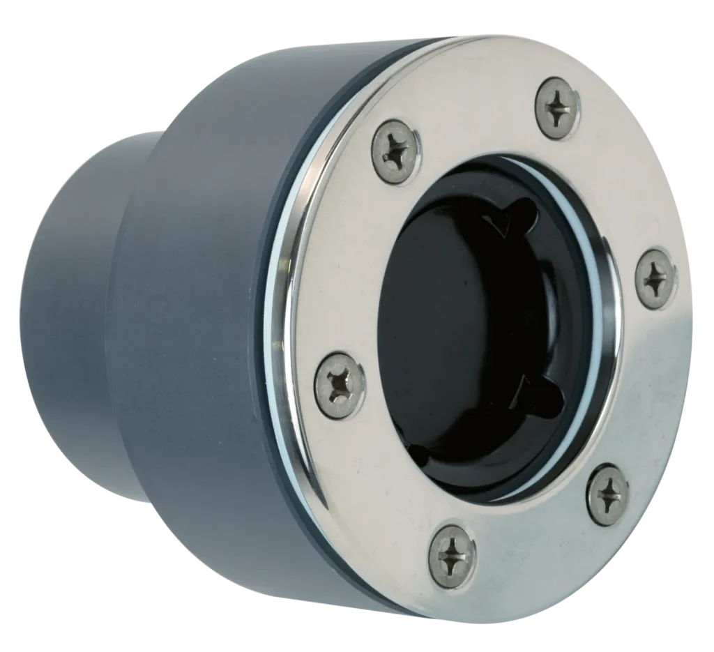 Bocchetta a parete aspirafango con flangia inox AISI316L e corpo in PVC con attacco F ø50 o M ø75 mm